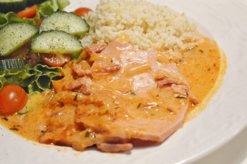 Häll såsen över kasslern och gratinera i ugnen i ca 15 min.