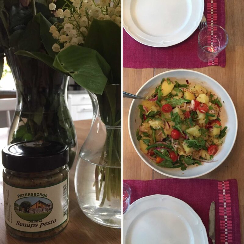 Petersborgs senapspesto är kryddig/örtig och har en ganska mild ton. Det jag tycker passar perfekt till sånt här! Och eftersom den är ganska mild så är den kanske lättare för hela familjen att gilla. Och kanske kul med något annat är den klassiska senapsvinägretten.