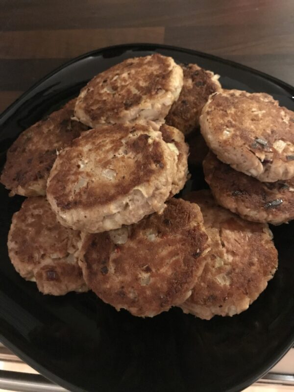 Blanda ihop alla ingredienserna och forma till biffar. Sen är det bara att steka. Gott…