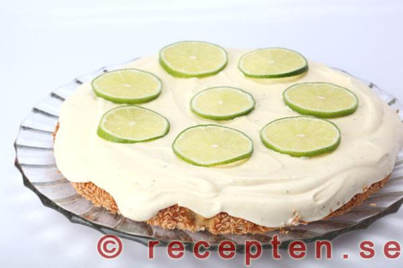 Smörj en rund form med löstagbar kant och beströ den med kokosflingor. Riv mandelmassan på…