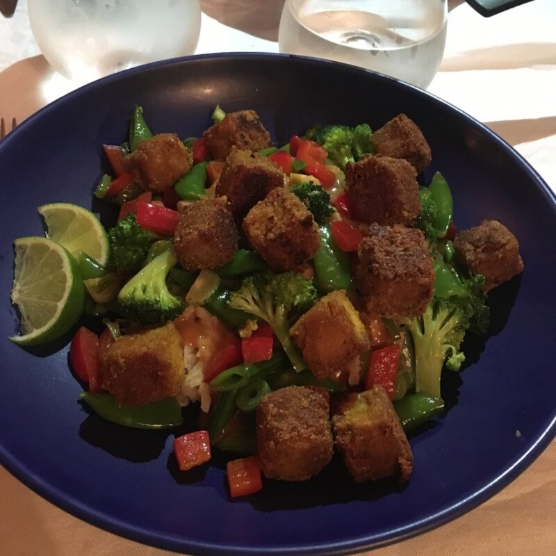 Tärna tofun och blanda med majsstärkelse i en skål. När tofun är helt täckt steker…