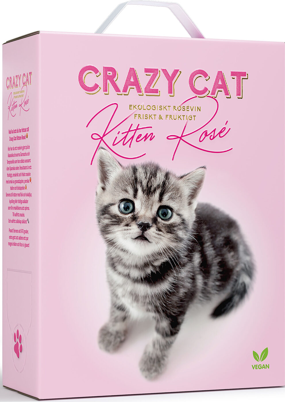 Crazy Cat Kitten Rosé är ett bedårande rosévin som kommer i en söt 3-liters box – lika ljuvlig för ditt öga som för din plånbok.