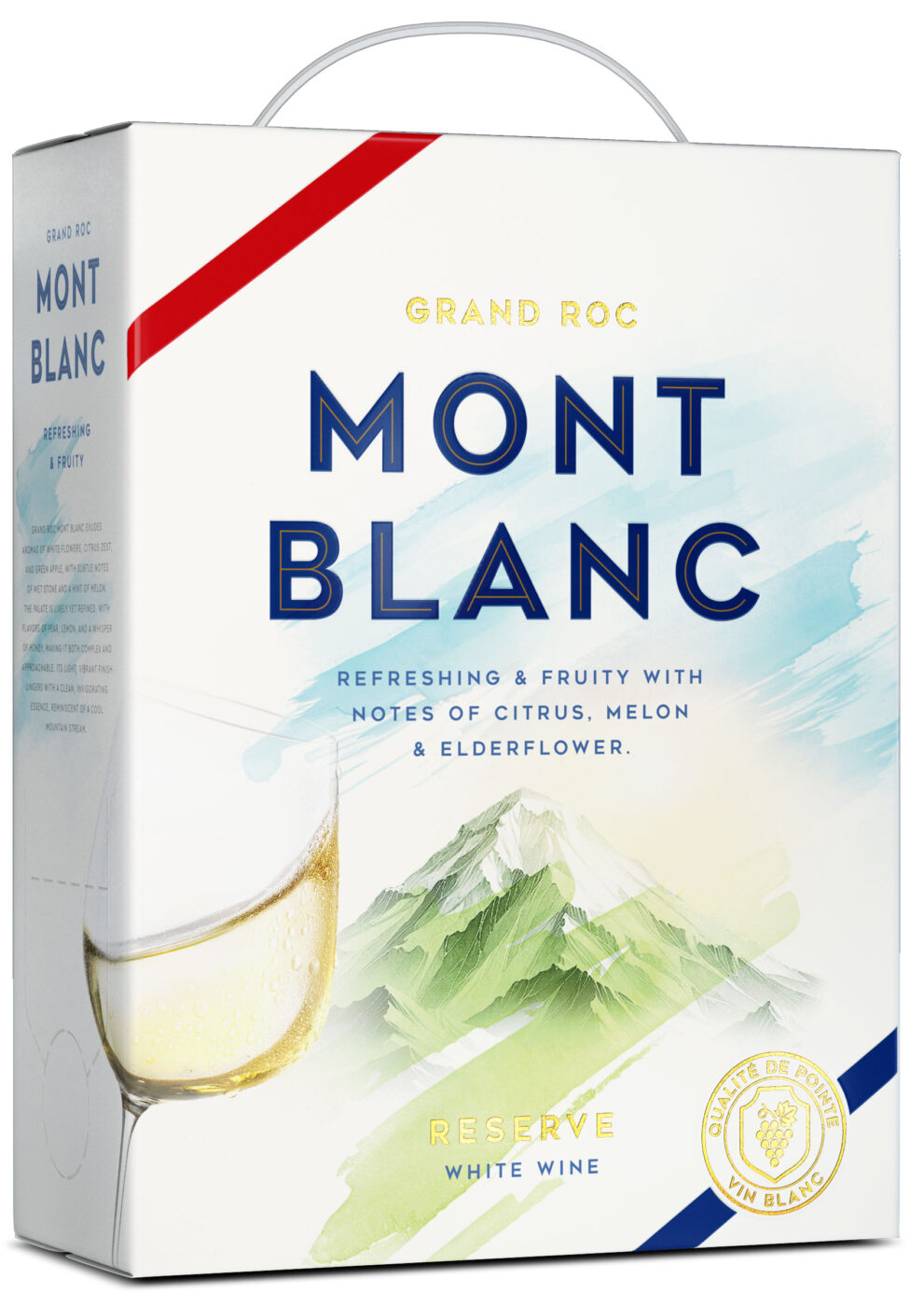 Med sin förpackning prydd av Europas högsta bergstopp, signalerar Mont Blanc renhet och höjdpunktens sofistikering – ”Ren elegans från Europas toppar.” Vinet är den ideala följeslagaren till en lättare måltid som fisk eller kyckling, men också till vegetariska rätter med syrliga och friska inslag.