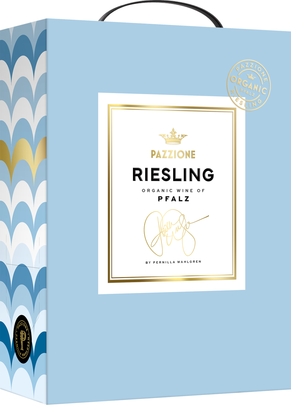 Efter succén med Pazzione Riesling på flaska ville Pernilla kunna erbjuda ett lika bra vin på box – och resultatet är en fräsch, krispig, smakrik riesling och ekologisk från det klassiska vinområdet Pfalz i södra Tyskland. Vinet har dessutom belönats med guldmedalj från prestigefulla Gilbert & Gaillard.
